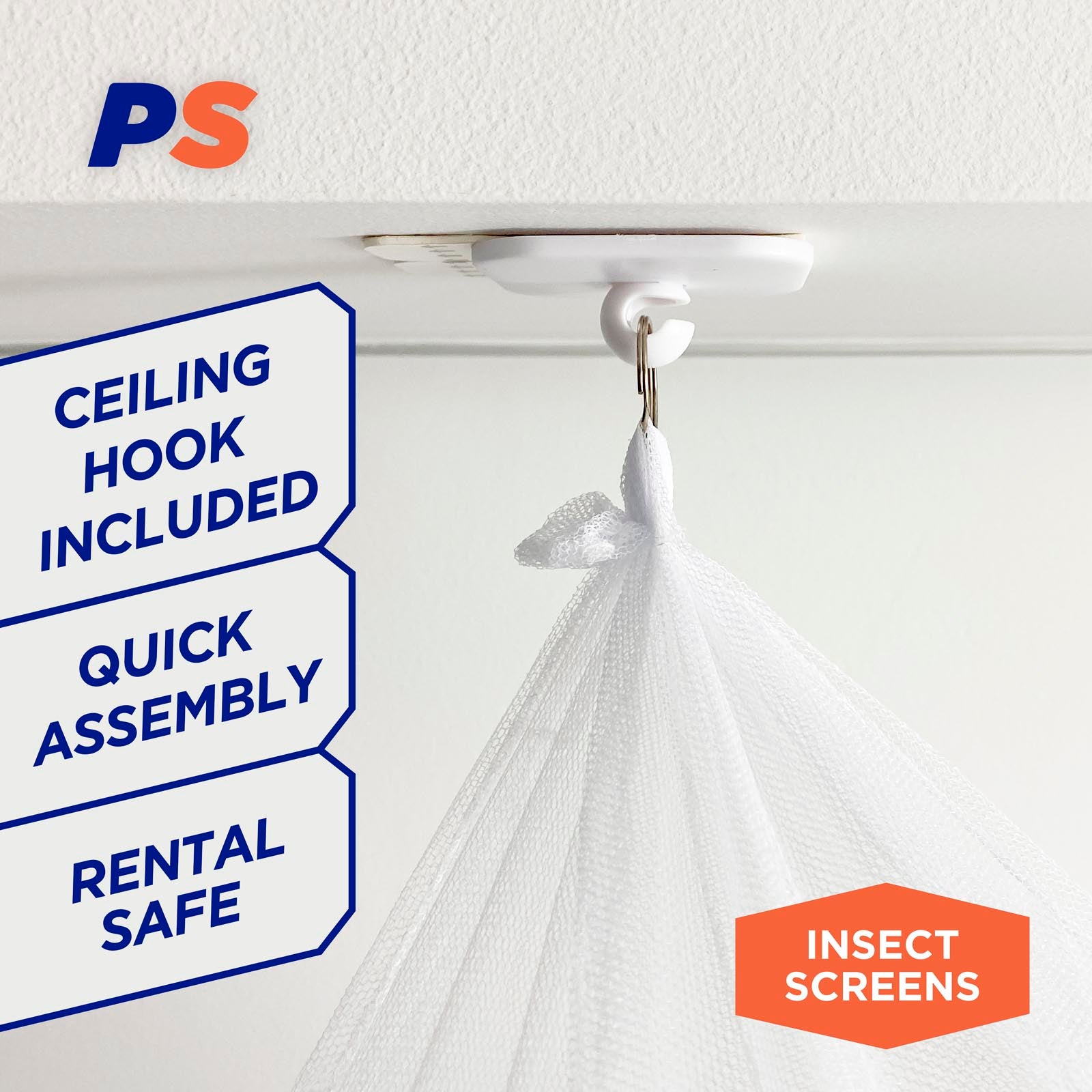 The Permastik™ Mosquito Bed Net ensures a good night’s sleep, free from mosquito and insect bites. With easy DIY installation and no hardware fixing required the bed net is suitable for use indoors and out, including camping, picnics and patios.