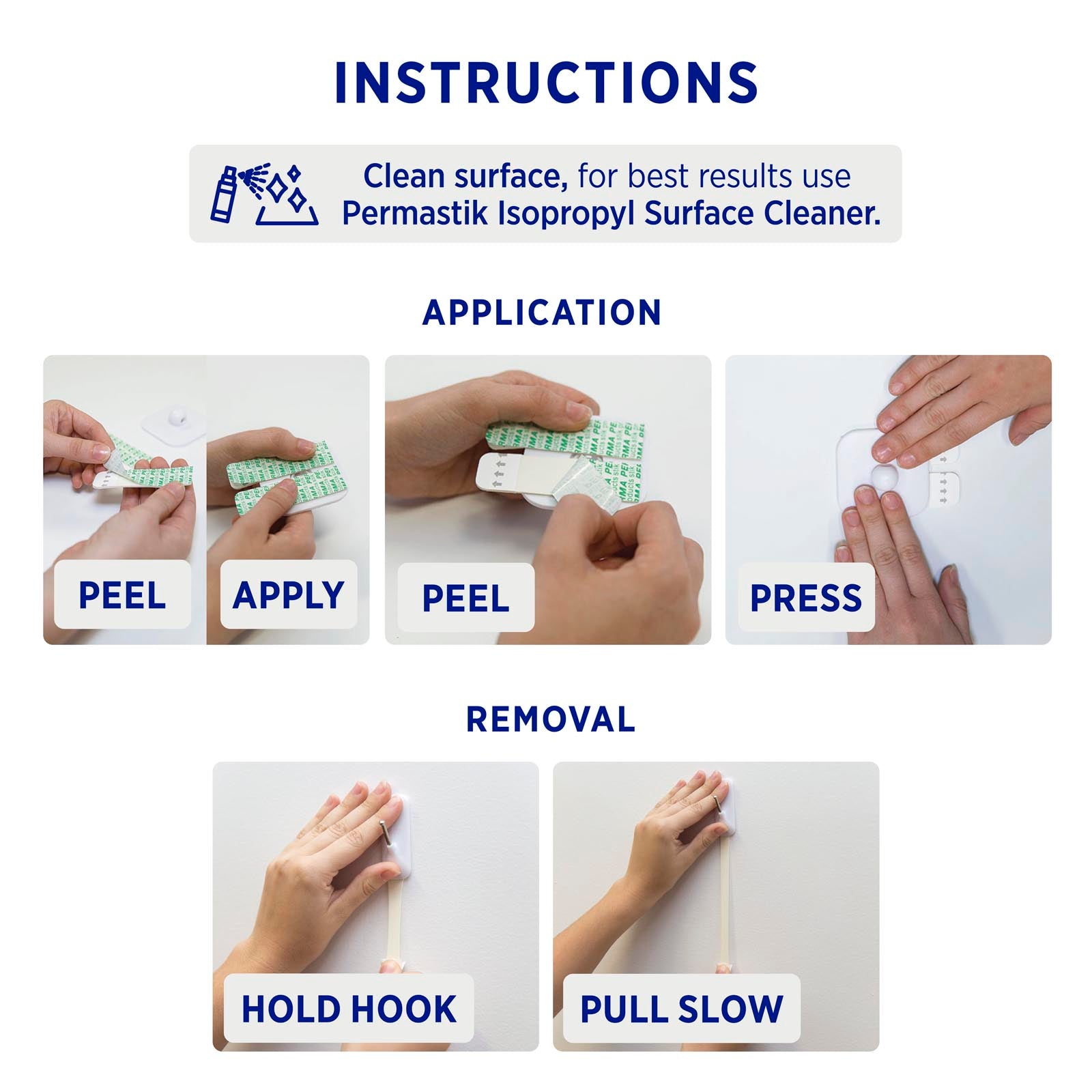 - Permastik™ removable ceiling hook included for damaging free hanging